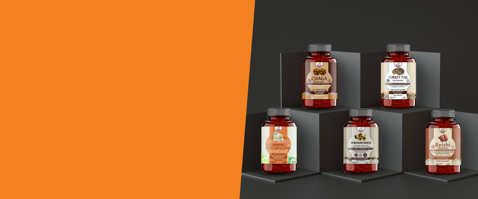Reishi, Shiitake, and Chaga support skin health, reduce wrinkles, and protect against aging signs.